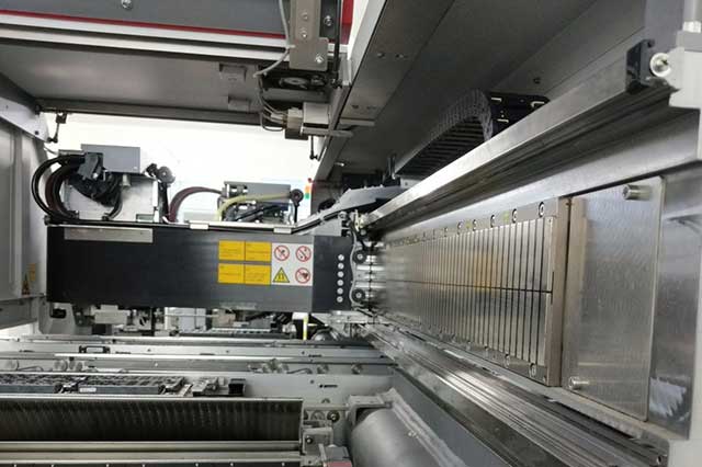 SIPLACE TX 貼片機的懸臂由一個 X 軸和一個 Y 軸組成。兩個軸均由配備集成溫度傳感器的線性電機驅動。這些溫度傳感器僅監控電機線圈。貼片頭安裝在各個 X 軸的貼片頭安裝板上。