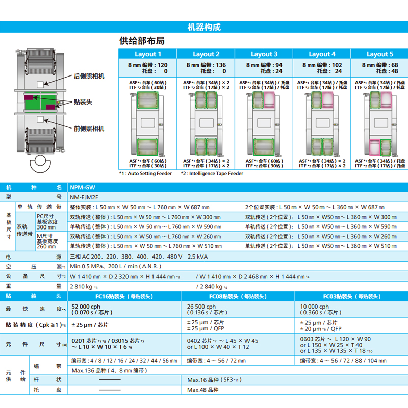 (八)、松下模塊式貼片機(jī)NPM-GW貼裝頭數(shù)量與規(guī)格