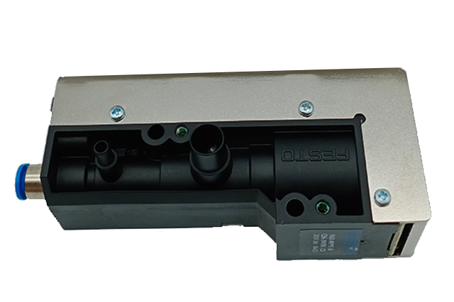 2、電磁閥智能切換:真空發生器上方的雙功能電磁閥受 PLC 信號驅動,實現毫秒級氣路轉換。當貼片頭 Z 軸下降觸達元件表面時,傳感器觸發信號,電磁閥立即開啟真空通道;放置階段則切換至吹氣模式,接入 0.15 巴壓縮空氣,推動元件脫離吸嘴。