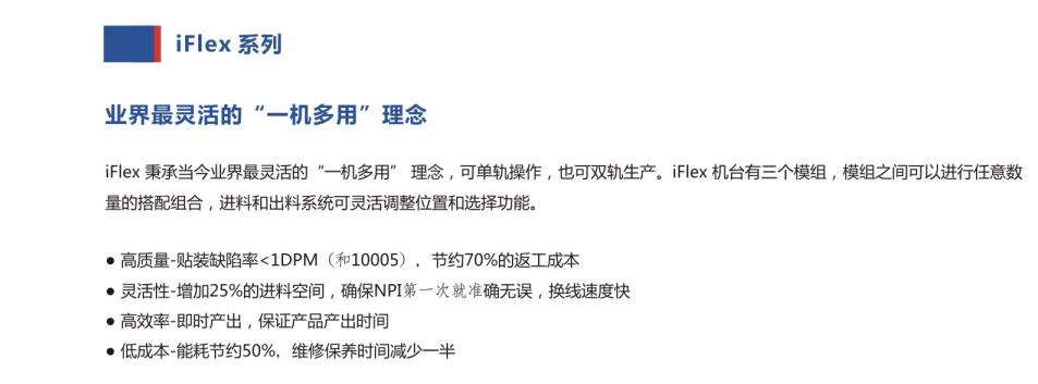 iFlex 秉承當今業界最靈活的”一機多用”理念,可單軌操作,也可雙軌生產。iFlex 機臺有三個模組,模組之間可以進行任意數量的搭配組合,進料和出料系統可靈活調整位置和選擇功能。